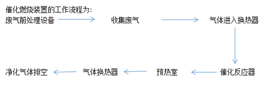催化燃燒裝置的工作原理是:借助催化劑使有機(jī)廢氣在較低的起燃溫度下進(jìn)行無(wú)焰燃燒,使有機(jī)廢氣分解為無(wú)毒的二氧化碳和水蒸汽。